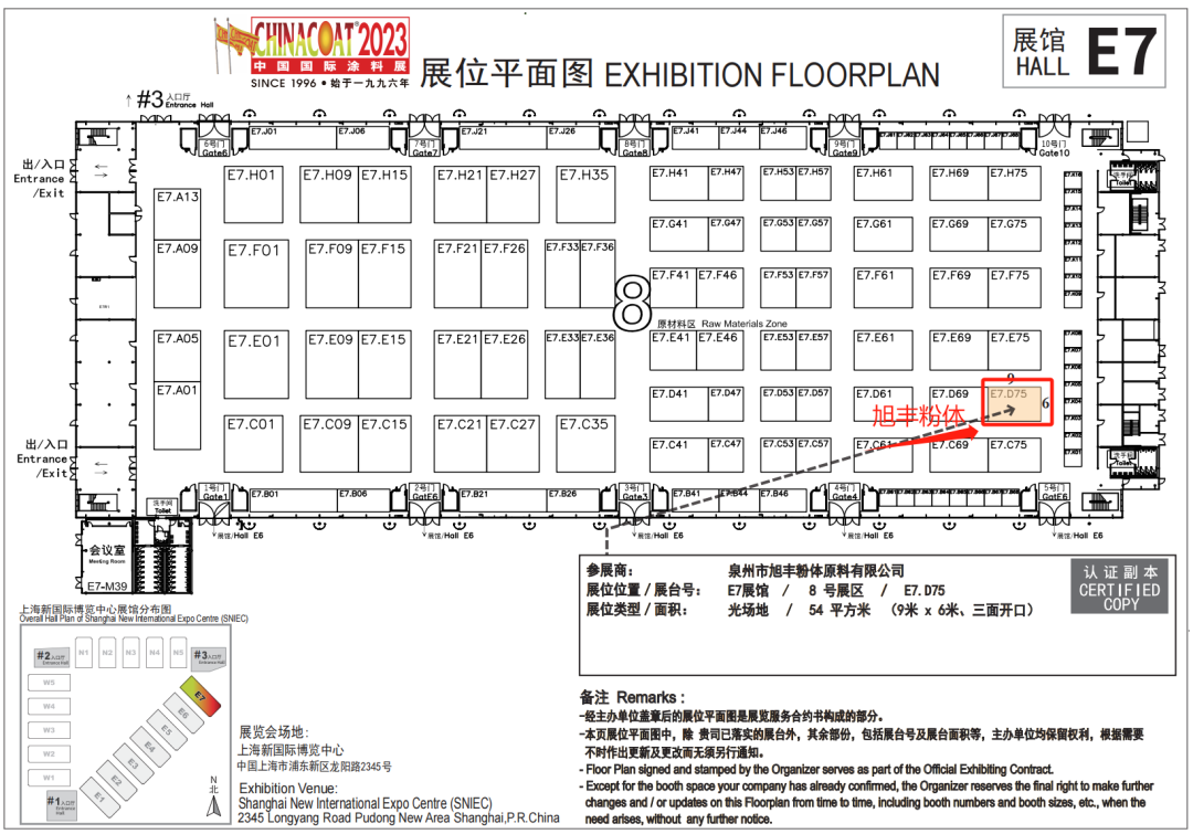 2023「中國國際涂料展 CHINACOAT」將于11月15日 - 17日在上海新國際博覽中心舉行。屆時旭豐粉體將攜涂料專業工程師、涂料領域相關產品解決方案及公司新品亮相,在此誠邀您蒞臨我司展臺參觀指導交流!