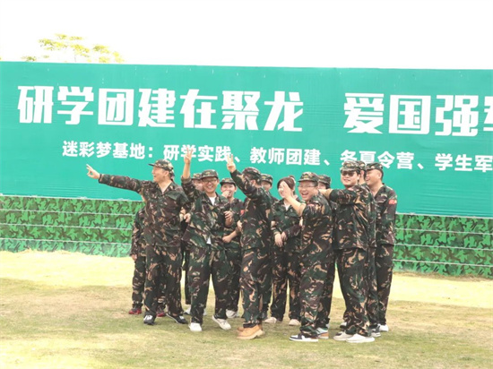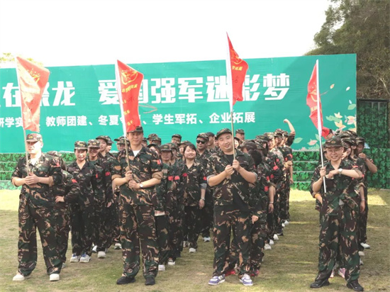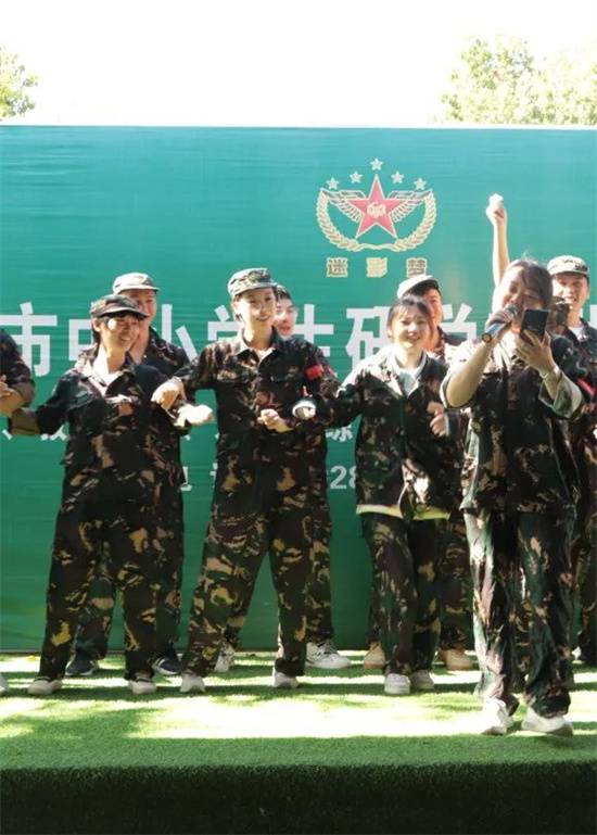 士兵突擊、火速變裝完,軍訓的感覺一下就上來了。經過簡單的桃花朵朵開環節、集合分組、起隊名、喊口號一系列操作直接讓我們從開始的拘謹變得士氣滿滿,各團隊就此組建完成。